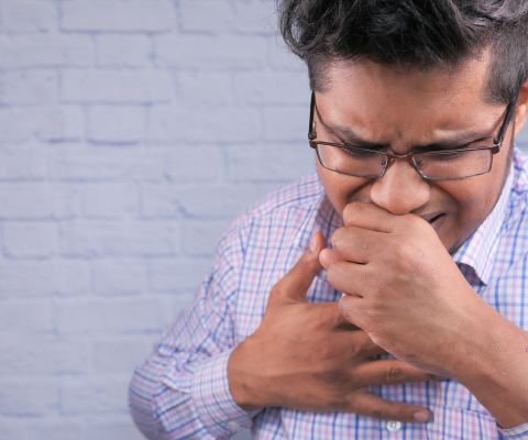 Tosse seca, falta de ar, chiado no peito, cansaço, queda de saturação de oxigênio.