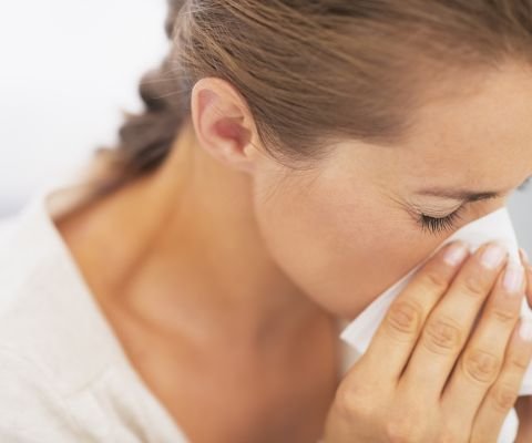 Espirros, coceira no nariz, na garganta, secreção nasal transparente, nariz entupido.