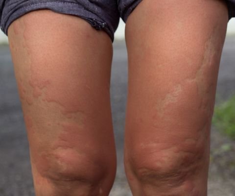 Irritação da pele caracterizada por lesões avermelhadas e levemente inchadas, como vergões, que aparecem na pele e coçam muito.